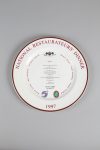 - [The Royal Automobile Club]. Assiette-menu du dîner de collecte de fonds des universités, 3ème service (Take 3 Colleges Fund Raising Dinner) du 9 avril 2005. Les 3 universités étant Bournemouth & pool College, Birmingham College of Food, Tourism & Creative Studies et la London School of Tourism, Hospitality & Leisure, Thames Valley University. Porcelaine de Steelite.