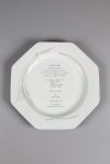 - [Sheraton Skyline Hôtel]. Assiette-menu octogonale en porcelaine blanche et camaïeu gris de l'Invité d'Honneur (Honoured Guest) du 2 octobre 1987 dans la Colony Room