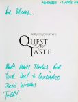 - LAYBOURNE'S (Terry). Quest for Test. England, Lindsey Shaw-Miller, Honeychurch Associates, 2004. Couverture toile noire avec jaquette. 232pp. Signé. Envoi : " Newcastle, 13 Avril 07. For Michel. Many many thanks for your help + guidance. Best wishes. Terry. "