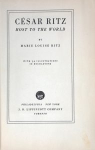 - RITZ (Marie-Louise). César Ritz. Host to the world. New York, J. B. Lippincott Compagny, 1938. Couverture toile rouge. 362 pp.