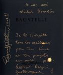 - HELLSTROM (Eyvind). Bagatelle. Oslo, Pantagruel Forlag, 2 000. Couverture rigide éditeur avec jaquette. 192pp. Envoi : " À mon ami Michel Bourdin. Je te souhaite tous les meilleurs pour ton livre et tes projets et aussi pour l'institut Royal gastronomique ! Eyvind Hellstrom 19.07.01 ".