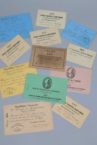 du président de la république (Napoléon II) le 20 septembre 1852 et un autre bon identique pour la proclamation de l'Empire en décembre 1852, après le coup d'état du président ; 3 bons de 1851, paroisse de Saint Nizier à Lyon.