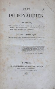[Boyaudier]. LABARRAQUE (A. G.). L'art du Boyaudier. Paris, Madame Huzard, 1822. In-8, de 138 p., broché, couverture d'attente (premier plat détaché, rousseurs). Édition originale du seul ouvrage français consacré aux boyaux. Comparaison des...