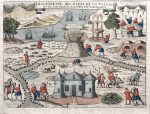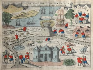 [Cocagne]. Bassano del Grappa - Discritione del paese di chucagna dove chi manco lavora piu guadagna (Description du pays de Cocagne…), Remondini éditeur, 1606. Burin. 44,5 × 58,5 cm. Belles marges, belle épreuve sur vergé, coloriée, plis,...