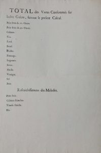 renseignée et annotée au fur et à mesure de la consommation à bord. Imprimées sur papier fort, on peut supposer que de telles listes, affichées à bord, ou souvent manipulées, n'aient que rarement été conservées. Cet exemplaire n'a pas été utilisé et c'est sans doute la raison pour laquelle il est parvenu jusqu'à nous.
