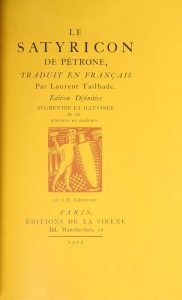 ** LABOUREUR. PETRONE. Le Satyricon. Éditions de la Sirène, 1922. In-12, demi-vélin à coins à la bradel (couvertures et dos conservés). Traduit par Laurent Tailhade. Illustré par LABOUREUR d'une vignette et de 6 dessins hors-texte reproduits...