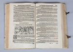 Landsart gelegenheit bey rechter zeit auffs beste zubestellen vnd mit allerhand Feldarbeit recht zuversorgen [...]. Gedruckt zu Franckfort am Mayn durch Peter Schmid in Verlegung Sigmund Feyrabend, 1583. In-folio, [6] f. (le dernier blanc), 566 p., [6] f. (le dernier portant une grande marque d'imprimeur gravé sur bois). [Sign. )( 6 (le dernier blanc), A 4 - ZZZ 4, AAAA 4-CCCC 6], reliure germanique de l'époque, peau de truie sur ais de bois, dos à 5 nerfs, titre manuscrit sur étiquette ancienne, plats estampés à froid d'une plaque centrale et d'un triple encadrement de roulette, fermoirs de cuivre (frottements sans gravité, coins un peu découverts ; trav. de vers au contreplat sup. ; titre un peu sali avec grattage et restauration au dos ; auréole angulaire en marge des tous premiers f., brunissures ordinaires dues à l'encre et la nature du papier).