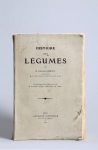 GIBAULT (Georges). Histoire des légumes. Paris, Librairie horticole, 1912. In-8, VIII pp., 404 p., figures dans le texte, broché (mouillure et déchirure sur le plat, non coupé en partie, qq. pages malmenées en bordures, petites mouillures...