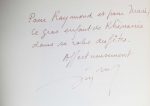 Envoi autographe signé de l'éditeur bibliophile : " Pour Raymond et pour Mari, ce gras enfant de Rhénanie dans sa robe des fêtes. Affectueusement. "