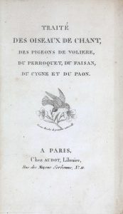 - ANONYME. Traité des oiseaux de chant, des pigeons de volière, du perroquet, du faisan, du cygne et du paon. Paris, Audot, s.d. [c. 1826]. In-8, broché (rousseurs).