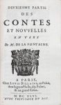 Édition originale, très rare, des deux premières parties des contes de La Fontaine. # La première partie contient douze contes, une ballade et un envoi. Sa publication avait été précédée la même année de Nouvelles en vers tirées de Boccace et de l'Arioste, une rarissime plaquette dans laquelle ne figuraient que les deux premiers contes, Le Cocu battu et content et Joconde, ainsi qu'une traduction anonyme de La Matrone d'Ephèse qui n'est pas de La Fontaine. # La seconde partie renferme treize contes en édition originale et une préface qui débute ainsi : Voici les derniers ouvrages de cette nature qui partiront des mains de l'auteur..., engagement qui ne fut pas tenu longtemps. # Bel exemplaire dans sa première reliure. # La deuxième partie est à l'adresse de Louis Billaine, associé au privilège délivré à Claude Barbin, comme souvent dans les exemplaires réunissant les deux parties. Celui-ci est bien complet des deux privilèges et du feuillet blanc terminant la première partie et le texte comporte plusieurs corrections à la plume. # De toute rareté dans cette condition. # Ex-libris manuscrit Desorgerils (?) sur le titre. # Piqûres de ver dans le caisson inférieur, manque infime sur la coiffe de tête, coins frottés. # Tchemerzine, III, 853-854 – Rochambeau, Contes, n°3 – Rochebilière, n°148 (« Ce premier recueil des contes de La Fontaine est un livre des plus rares ») – Le Petit, 224-226.