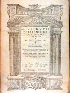 VITRUVE. De architectura libri decem. Lyon, Jean de Tournes, 1586. In-4, veau brun, dos orné, roulette sur les coupes, tranches jaspées (Reliure du XVIIe siècle).
