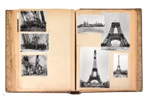 Superbes albums renfermant plus de 2200 clichés du studio Chevojon, agence photographique qui immortalisa la Ville Lumière dès la fin du XIXe siècle à travers ses grands chantiers, ses monuments, ses expositions universelles, ses rues, ses façades... Cette collection, composée de tirages postérieurs de photographies principalement prises entre la fin du XIXe siècle et les années 1950, se compose comme suit : # – Deux albums (env. 500 clichés, fin du XIXe siècle aux années 1930) : Ruines des Tuileries, étapes de la construction et chantier de la Tour Eiffel par Louis-Emile Durandelle, expositions universelles, Samaritaine, Bibliothèque nationale, Opéra, Montmartre, place Vendôme, Bon Marché, Louvre (bâtiment et collection), Champs Élysées, rues, mobilier urbain, véhicules, mode, etc. # – Sept albums (env. 1480 clichés, années 1950) : Panoramas, toits, rues, façades, murs, caves, usines, etc. # – Un album (env. 210 clichés en couleurs, années 1980) : Monuments, vues de jour et de nuit, vues aériennes par Thomas d'Hoste, etc. # Quelques reliures de toile beige très usagées, des clichés ont été retirés des albums.