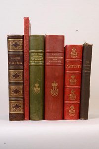 GALIBERT (Léon). L’Algérie ancienne et moderne depuis les premiers établissements des Cartheginois jusqu’à la prise de la smalah d’Abd-El-Kader. Paris, Furne et Cie, 1844. Grand in-8, demi-chagrin brun moucheté, dos orné (Reliure de l’époque). Édition originale, second tirage, elle est ornée de 12 planches de costumes militaires gravées sur bois et coloriées par Raffet, de 24 gravures sur acier hors texte par Rouargues frères d’après Raffet et Biard, d’une carte en couleurs dépliante et de 63 figures dans le texte. # DOR (Victor Édouard). L'Instruction publique en Égypte. Paris, Lacroix, Verboeckhoven et Cie, 1872. In-8, demi-percaline grise avec coins (Reliure de l'époque). Édition originale. Envoi estompé sur le faux-titre s'étant reporté sur le titre. Mors supérieur entièrement fendu, dos décollé. # GUERRIER DE HAUPT (Marie). Aventures de trois enfants algériens. Paris, Hatier, 1903. In-4, percaline décorée, tranches dorées (Reliure de l'éditeur). Nombreuses gravures en noir et couleurs. # [COLLECTIF]. L'Égypte. Aperçu historique et géographique. Gouvernements et institutions. Vie économique et sociale. Le Caire, Institut français, 1926. In-8, basane rouge maroquinée, frise dorée, chiffre couronné répété au dos (Reliure moderne). Nombreuses illustrations dont une grande carte dépliante. Tirage sur pur fil Lafuma. # SABRY. L'Empire égyptien sous Mohamed-Ali et La question d'Orient (1811-1849). Paris, Geuthner, 1930. In-8, basane rouge maroquinée, frise et chiffre dorés, non rogné (Reliure moderne). # BÉAT DE FISCHER. Contributions à la connaissance des relations suisses-égyptiennes [...] suivies d'une esquisse des relations suisses-éthiopiennes. Lisbonne, s.n., 1956. In-8, basane verte maroquinée, frise et chiffre dorés, non rogné (Reliure moderne). Nombreuses illustrations. E.A.S.