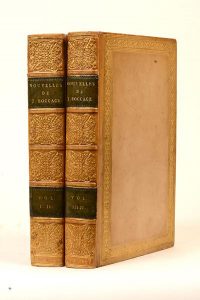 BOCCACE. Nouvelles. Traduction libre par Mirabeau. Paris, Duprat, Letellier et Cie, 1802. 4 tomes en 2 volumes in-8, veau sable, frise dorée, dos richement orné, tranches dorées (Reliure de l'époque).