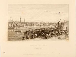 Première partie de la publication de cette suite renfermant 39 (sur 40) superbes vues de Londres et de ses environs, gravées de 1826 à 1828 (5 non datées) par George Cooke, d'après les dessins des meilleurs peintres de paysages et de marine du temps tels que Augustus Wall Callcott, Samuel Prout, William Havell, ou encore Clarkson Frederick Stanfield. # La couverture et le feuillet d'avis aux souscripteurs de cet exemplaire sont situés à Hackney, ce qui indique un tirage antérieur à 1829. L'ouvrage fut complété de huit planches qui furent gravées et datées entre 1832 et 1834 et peut contenir jusqu'à deux planches supplémentaires. Il est la plupart du temps annoncé complet en 50 planches. # De la bibliothèque d'un membre de la famille de Kergorlay, avec ex-libris gravé, l'une « des plus illustres de l'ancienne chevalerie de Bretagne. » # Dos légèrement frotté, quelques rousseurs. # Jean B. Courcelles. Dictionnaire universel de la noblesse de France. 1821. t. III. pp. 344-347.