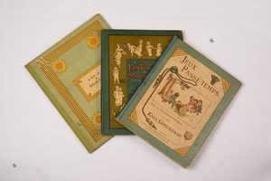 Édition originale, comprenant de nombreuses illustrations en couleurs par Kate Greenaway. # On joint deux ouvrages de la même illustratrice : Jeux et Passe-temps. Paris, Hachette, 1890. In-8, cartonnage, couverture illustrée d'éditeur. Texte imprimé en bistre foncé et 24 vignettes en couleurs. – LEVOISIN (J.). La Lanterne magique. Paris, Hachette, s.d. [vers 1880]. In-8, cartonnage, couverture illustrée d'éditeur. 50 illustrations en couleurs. # Gumuchian, nos 2803, 2807 et 2809.