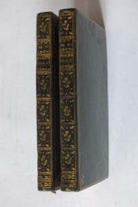 2 volumes in-8. Plein maroquin vert (début XIXème). Triple filet doré encadrant les plats, motifs en écoinçons. Roulette intérieure. Dos lisse orné de décors floraux. Gardes marbrées. Tranches à la feuille d’or.