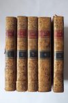 5 volumes in-8. Frontispice et 8 planches hors texte par LE BARBIER, CHAUDET et BOICHOT gravées par DELIGNON, DELVAUX, DAMBRUN et DE LAUNAY. Pleine basane racinée d’époque. Dos lisse orné avec pièce de titre et de tomaison. Gardes marbrées. Frottements, quelques coiffes, mors et coins abîmés. Le tome V contient un extrait des différents écrits sur cet ouvrage, des imitations en vers et la défense de l’auteur.