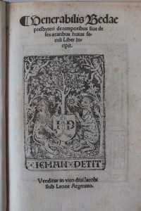 BEDA (Bède, dit Le Vénérable) : « Venerabilis Bedae presbyteri de temporibus sive de sex aetatibus huius seculi liber incipit. » Paris Jean Petit 5 avril 1507.