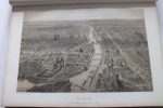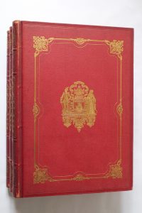 3 volumes grand in folio ornés de dessins et lithographies sur fond teinté par Philippe BENOIST (pour le plus grand nombre) ; ARNOUT, CLERGET, CHAPUY, ISABEY, Gustave JANET, Jules DAVID, Hippolyte LALAISSE…Vignettes de Félix BENOIST et CATENACCI, exécutées sur bois par les premiers graveurs. Plein chagrin rouge de l’éditeur. Important décor d’encadrement sur les plats avec au centre des premiers, le blason de Paris surmonté de la devise et du Louvre médiéval entre une dame en habit de la Renaissance et un chevalier en armure. (légères usures aux coins et aux mors). Dos à faux nerfs orné du blason et de fleurons. Gardes moirées. Tranches à la feuille d’or. Très beaux exemplaires avec très peu de rousseurs. ÉDITION ORIGINALE.