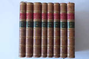 8 volumes in-8. Seconde édition entièrement refondue sur un nouveau plan, et enrichie de la partie bibliographique (complet). Le tome VIII contient la Table synthétique et chronologique. Reliure uniforme en demi-basane glacée. Dos à faux nerfs orné avec pièce de titre et de tomaison, date au talon. (légers accrocs à quelques coiffes). Gardes et tranches peignées.