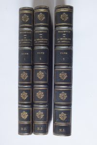 3 volumes in-8. Demi chagrin bleu. Dos à faux nerfs orné de filets et fleurons dorés (initiales au talon). Tranches et gardes peignées. Bel exemplaire.