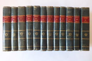 12 volumes in-8 illustrés. (3 volumes consacrés à Cook, 2 à Lapérouse). Un cahier désolidarisé au 1er volume. 6 cartes rempliées dont une détachée. Cartonnage vert de l’ époque. Dos lisse avec pièce de titre.