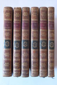 6 volumes in-8 (complet). 7 planches rempliées dont 5 de vulcanologie. Reliure uniforme en veau marbré. Dos lisse orné de frises et rosaces avec pièce de titre et tomaison en maroquin (petit manque à une coiffe). Gardes marbrées.