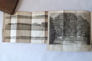 2 volumes in-8. Portrait-frontispice, une carte rempliée, 14 planches dont certaines repliées (manque une planche). Vocabulaire de la langue pélew in fine. Quelques salissures par endroits. Pleine basane racinée d’époque. Frise dorée encadrant les plats. Dos lisse orné de vases et rosaces. Coiffes et coins rognés. Gardes marbrées.