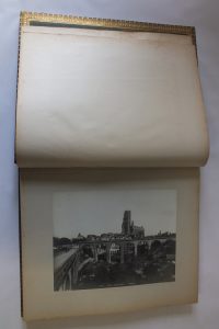 Petit in folio. 22 photographies collées sur carton des Etablissements NEURDEIN Frères (ND phot). - dimensions des photos : 27,5 x 21,5 cm –Plein maroquin par JALBY reliure d’Art Albi. Importante dentelle dorée d’encadrement intérieure. Filets sur les coupes. Dos lisse avec monogramme RD au talon. Tête dorée.