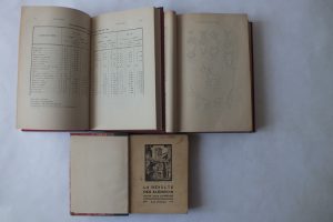 •SANTI (Louis de) et VIDAL : « Deux Livres de Raison (1517-1550) avec des notes et une introduction sur les conditions agricoles & commerciales de l’Albigeois au XVIème Siècle. » Paris,Champion, Picard & Fils, Toulouse Privat, Albi Nouguiès 1896. Fort in-8 orné de planches (Manque la carte). Pleine toile grenat.