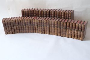 51 volumes grand in-12 (incomplet). Cette série comprend : « Histoire Générale et particulière » 1749-1770, 13 volumes ; « Histoire des oiseaux » 1770-1775, 17 volumes ; « Supplément à l’Histoire Naturelle » 1774-1782, 12 volumes ; « Histoire des minéraux » 1783-1788, 9 volumes. Nombreuses planches, cartes rempliées. Reliure uniforme en veau marbré de l’époque (rares frottements et accrocs). Dos à nerfs orné de motifs floraux avec pièce de titre et de tomaison. Gardes marbrées. Ensemble rare dans une reliure en état remarquable pour des formats maniables. Intérieur très propre.