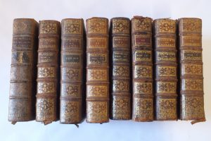 A Paris chez Charles Osmont 1743, Veuve Delaguette 1757, Le Prieur 1768 et chez Didot le jeune 1774 (Tome I, III, IV et V) et nouvelle édition chez Le Prieur 1761-68, Veuve Delaguette 1757, et Didot le jeune 1774. (mêmes tomes). Frontispices d’après COCHIN. Planches rempliées. Pleine basane d’époque frottée (quelques manques). Dos à nerfs orné. Gardes marbrées.