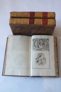3 volumes in-8. (complet). 27 planches in fine au tome III. Plein veau jaspé. (très légers accrocs). Frise dorée encadrant les plats. Roulette sur les coupes. Dos lisse orné de rosaces et de vases dorés avec pièce de titre et de tomaison. Gardes marbrées. Tranches mouchetées.