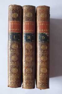 3 volumes in-8 (incomplet, manquent 3 volumes). Pleine basane marbrée de l’époque (frottements). Dos lisse orné de rosaces avec pièce de titre et de tomaison.