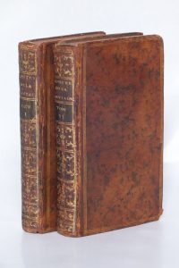 2 volumes in-12. Portrait-frontispice de l’auteur au premier volume. Veau marbré de l’époque. Triple filet doré encadrant les plats. Dos lisse orné de motifs floraux avec pièce de titre et de tomaison. Coiffes rognées, coins usés. Gardes marbrées.
