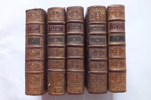 5 volumes grand in-12 (le tome cinquième contient «les vœux d’un Solitaire » et « la chaumière Indienne ») Frontispice d’après MOREAU. 3 planches rempliées. Plein veau de l’époque (frottements). Triple filet doré encadrant les plats. Dos à nerfs orné avec pièce de titre et de tomaison en maroquin (coiffe supérieure du tome I abîmée). Gardes marbrées.