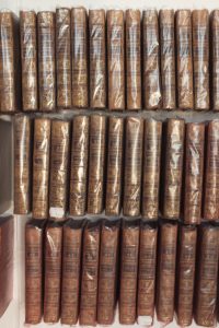51 volumes in-8 du tome 1 à 51 (incomplet). 2 portrait-frontispices, 14 planches au tome 31 (physique de Newton). Demi-basane de l’époque. Dos à nerfs orné avec pièces de titre et de tomaison. (légers manques à quelques coiffes).