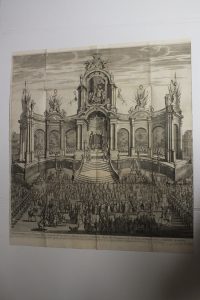 In-folio. Frontispice allégorique d’après Philippe-Charles MARISSAL gravé sur cuivre par Frans PILSEN. Grande planche rempliée montée sur onglet de l’inauguration d’après David T’KINDT et gravé sur cuivre par Frans PILSEN. Pleine basane d’époque. Grandes Armes du Saint-Empire des Habsbourg en doré sur le premier plat. Blason de la ville de Gand sur le second.