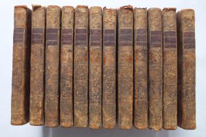 12 volumes in-8 (complet). Portrait-frontispice du roi Gustave III gravé par P.VIEL d’après SÄRGEL. Epître dédicatoire à sa Majesté le Roi de Suède. Reliure uniforme en veau marbré de l’époque (quelques manques et frottements). Dos lisse orné de fers spéciaux aux lions dorés avec les armes du Maréchal Duc DE DURAS au talon, pièce de titre en maroquin grenat. Gardes marbrées. Etat intérieur satisfaisant.