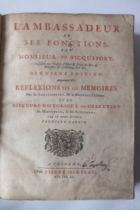 WICQUEFORT (M. de) : « L’Ambassadeur et ses fonctions. Dernière édition, augmentée des réflexions sur les Mémoires pour les Ambassadeurs. De la Réponse à l’Auteur et du Discours Historique de l’élection de l’Empereur, & des...