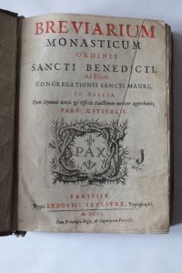 « BREVIARIUM Monasticum Ordinis Sancti Benedicti, Ad Usum Congregationis Sancti Mauri, in Gallia…Pars Aestivalis. » Parisiis Typis Ludovici Sevestre, Typographi 1701.