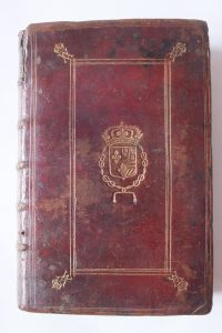 Double encadrement de filets avec chiffres de la reine sous couronne aux angles. Dos à nerfs orné de caissons aux mêmes chiffres, fleurs de lys aux angles. Coiffe supérieure abîmée. Coins restaurées. Roulette intérieure. Tranches dorées.