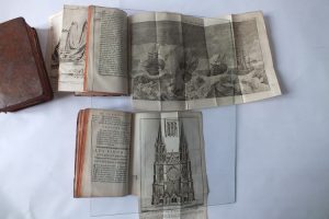 3 volumes petit in-8 (Tomes 3, 5 et 7). Nombreuses planches rempliées. Pleine basane marbrée de l’époque (reliures abîmées). Dos à nerfs orné de motifs floraux avec pièce de titre.