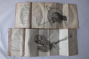 2 volumes in-8. 17 planches hors texte rempliées (complet). Quelques notes manuscrites en marge. Demi-basane de l’époque abîmée. Dos à nerfs orné de caissons avec pièce de titre. Tome I un peu dérelié.
