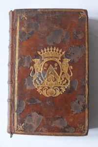 Plats aux armes des Comtes MOREAU DE NASSIGNY et DE SÉCHELLES. Triple filet doré encadrant les plats. Roulette dorée à l’intérieur. Dos à nerfs orné de motifs floraux (petits manques). Gardes et tranches marbrées. Rare.