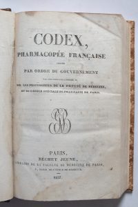 « CODEX, Pharmacopée Française rédigée par ordre du Gouvernement. » Paris Béchet Jeune Libraire de la Faculté de Médecine de Paris 1837.