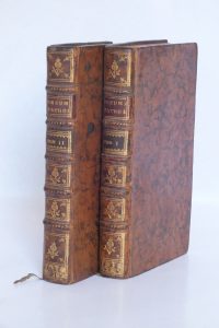 2 volumes grand in-12. Explication de quelques termes de Médecine. Plein veau marbré de l’époque. Dos à nerfs orné de motifs floraux et de soleils avec pièce de titre et de tomaison en maroquin. Bel exemplaire hormis quelques petites taches sur le premier plat du tome I.
