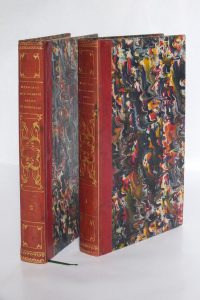 2 volumes in-8. Rousseurs éparses. Demi-basane rouge de l’époque. dos lisse à décors romantiques. Plats, gardes et tranches marbrés.